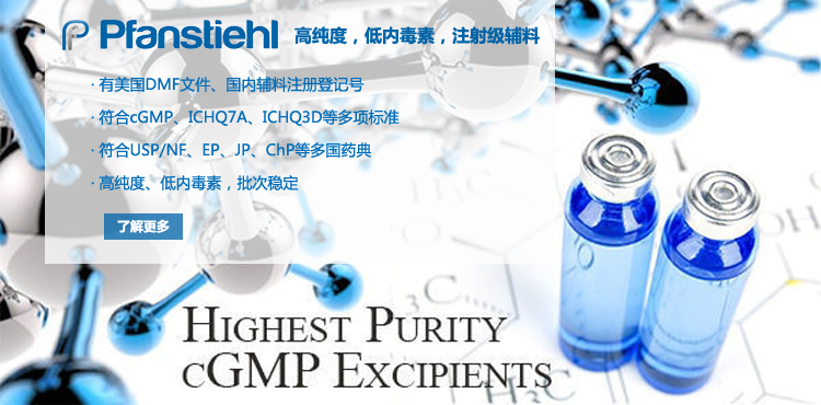 “熱烈祝賀Pfanstiehl的注射級甘氨酸Glycine(G-140)喜獲CDE登記號F20250000403, 這是Pfanstiehl產品獲得的第18個CDE登記號!”甘氨酸在醫藥輔料制劑中應用廣泛,, 可作為緩沖劑,增溶劑,穩定劑等,具有諸多優勢。Pfanstiehl秉承一貫高品質理念,為滿足全球生物制藥行業對于高品質甘氨酸的需求,隆重推出的注射級甘氨酸Glycine (G-140), 具有超高純度,超低內毒素,超低金屬殘留的特點,單獨檢測29種金屬離子,并且新增DNA,RNA,DNA酶,RNA酶和脂肪酶,亞硝酸鹽等多項質量指標的檢測,符合多國藥典規定(USP, EP, BP, JPE, ChP),可用于生物治療性藥物和疫苗的生產。產品信息:· 產品名稱:Glycine, High Purity, Low Endotoxin, Low Metals, USP, EP, BP, JPE, ChP (G-140)· 中文名稱:甘氨酸· 分子式:C2H5NO2· 分子量:75.07 g / mol· CAS號:56-40-6· 產品貨號:G-140產品特點: · 超高純度,超低內毒素,超低微生物含量,超低金屬雜質殘留· 質量指標新增DNA,RNA,DNA酶,RNA酶,脂肪酶和亞硝酸鹽檢測· 符合多國藥典:USP, EP, BP, JPE, ChP· 符合ICH Q3D標準· 符合GMP標準· 已獲DMF和CDE登記號 產品應用:· 緩沖劑· 穩定劑· 增溶劑如果您對Pfanstiehl注射級別Glycine G-140感興趣,歡迎聯系Pfanstiehl 中國區代理商北京西美杰科技有限公司獲得如下詳細的產品概況說明文件和測試樣品。Pfanstiehl Inc.最新產品系列如下,歡迎聯系北京西美杰科技有限公司獲取100g裝免費樣品。北京西美杰科技有限公司為Pfanstiehl中國代理,為客戶提供完善的技術支持與售后服務。歡迎撥打西美杰客服電話400-050-4006或者登陸網站www_xmjsci_com.luofeiapp.com了解更多信息。 更多>